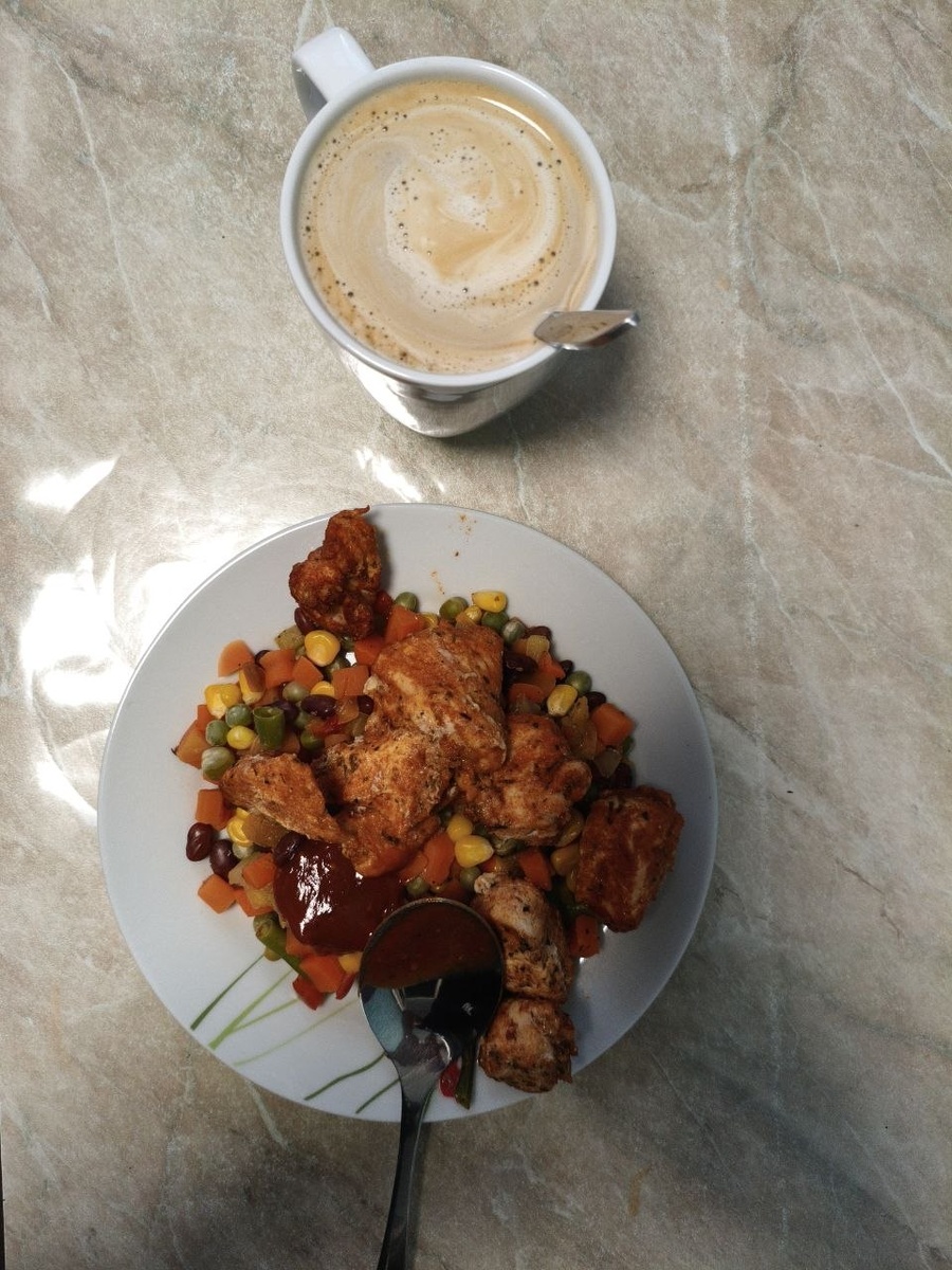 Запись пошла. 40 день, ужин. Уже ставшие привычкой курица и овощи, размер правда меньше, раньше ел 200г курицы, сейчас в районе 100. #жриправильно #белокжирныйуглевод #мояцель