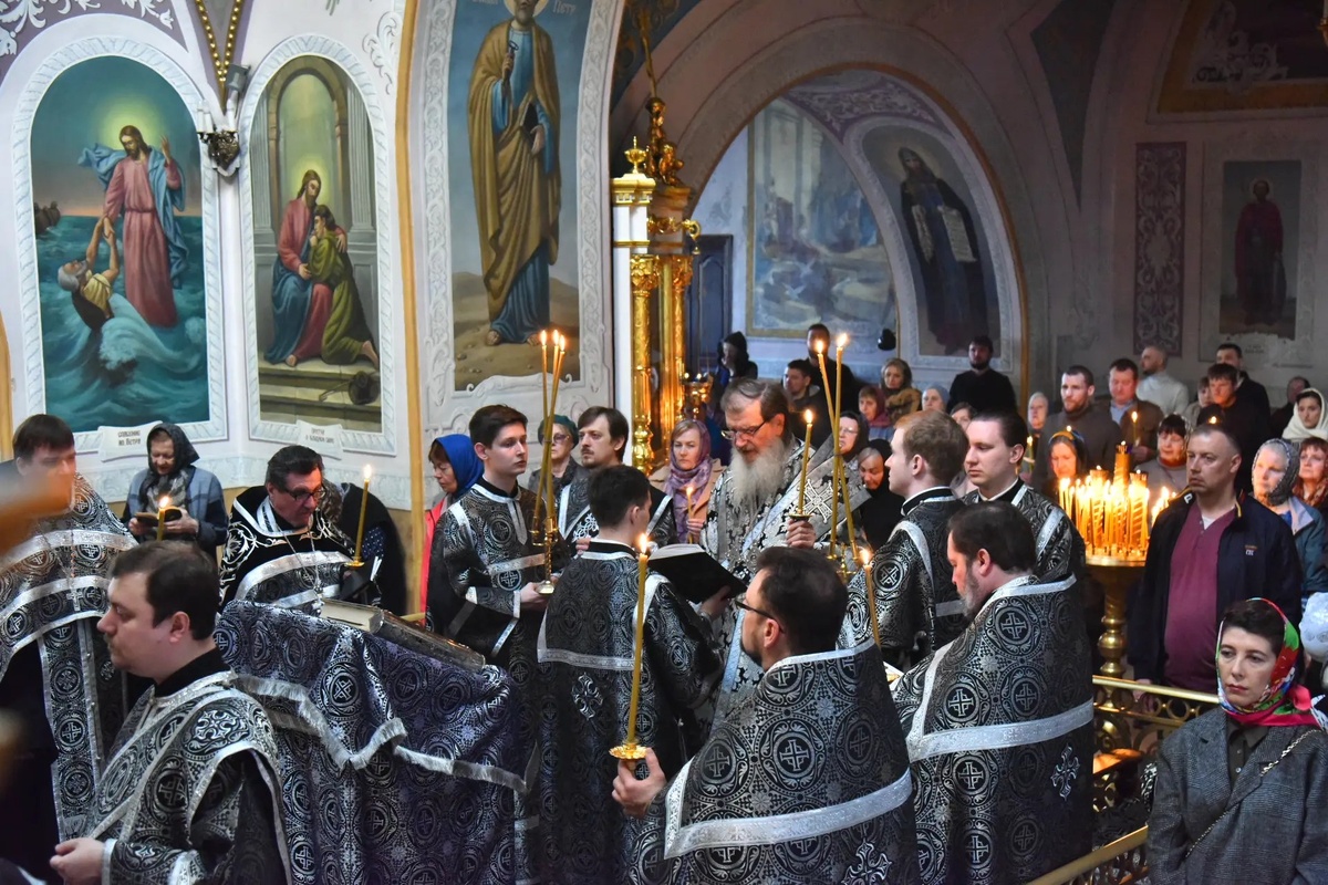 29 марта 2026 года митрополит Оренбургский и Саракташский Петр в сослужении духовенства Никольского кафедрального собора совершил вечернее