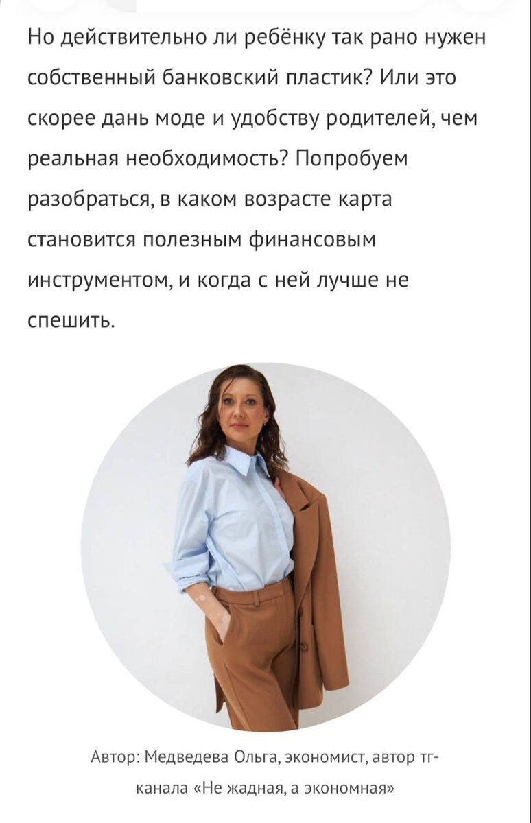 ! Мои экономные, минутка хвастовства 🐸 В популярном медиа для мам вышла моя статья "Банковская карта для ребёнка: с какого возраста и зачем?" . Финансовая грамотность детей и подростков - это моя боль! Уверена, что основы непростых отношений с деньгами закладываются именно в семье. Хочу больше писать об этом и обсуждать с вами. Я прошла этот путь и у меня есть чем поделиться! Мой пятилетний сын всерьёз думал, что деньги получают в «денежнице» (так он называл банкомат). Когда я поняла, что он видит в основном операции с картой, вернула в свой кошелёк наличные, и мы вместе отсчитывали купюры и монеты на кассе. Полезно проговаривать свои действия при оплате. Например: «Я плачу 100 рублей за молоко». Здоровые отношения с финансами с детства - это моя, можно сказать, миссия. Как бы высокопарно не звучало. Погнали жить ХО-РО-ШО! #экономныйгедонист #детскаяжаба