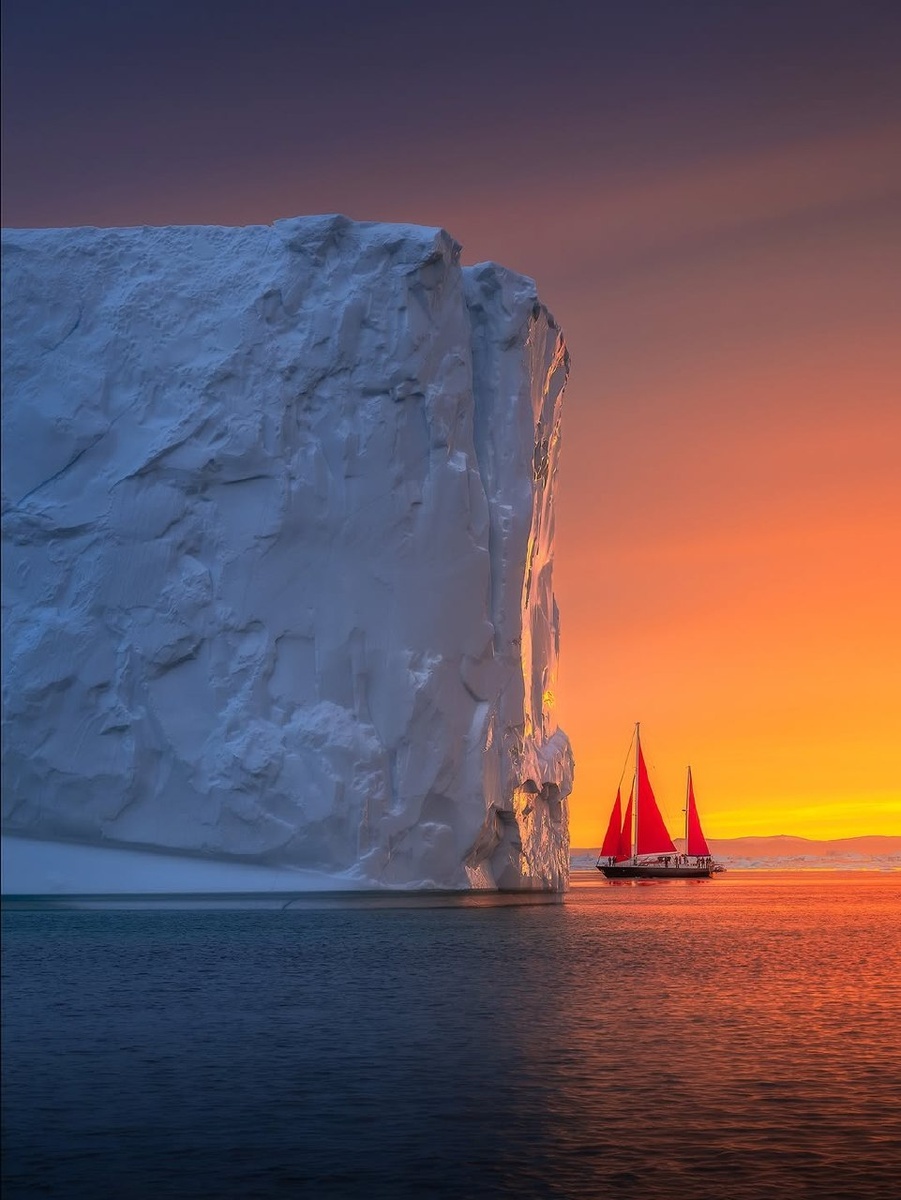 Фото было сделано у берегов Гренландии. На таком отреставрированном барке искателей возя на круиз по северным морям. А со стороны выглядит просто волшебно! Словно там сам Артур Грэй плывет навстречу Ассоль. Источник: Armand Sarlangue / armandsarlangue.