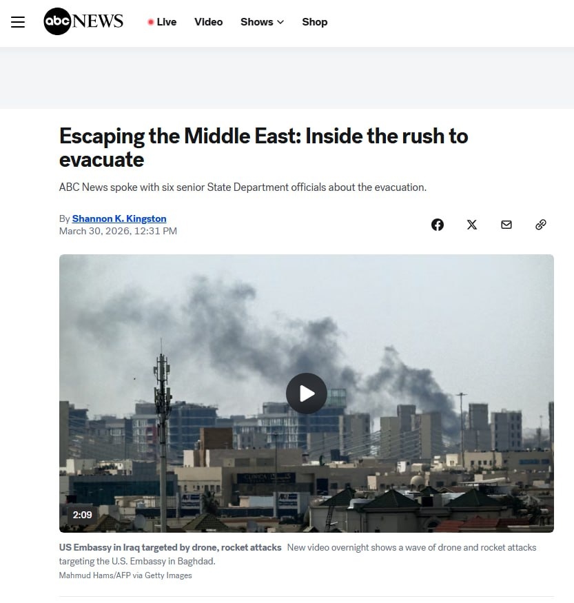 Госдеп эвакуировал из региона 4000 своих сотрудников и членов их семей, а также 50 000 «частных граждан». Это сделали в срочном порядке и на фоне «беспрецедентной» угрозы интересам США. «Госдеп постоянно разрабатывает план действий для любой ситуации. Но, по словам ряда официальных лиц, масштаб ответных ударов Ирана по американским целям в странах Персидского залива является беспрецедентным», — отмечает ABC. Просчитались, но где?🤔 👍«БайБайден» в МАХ