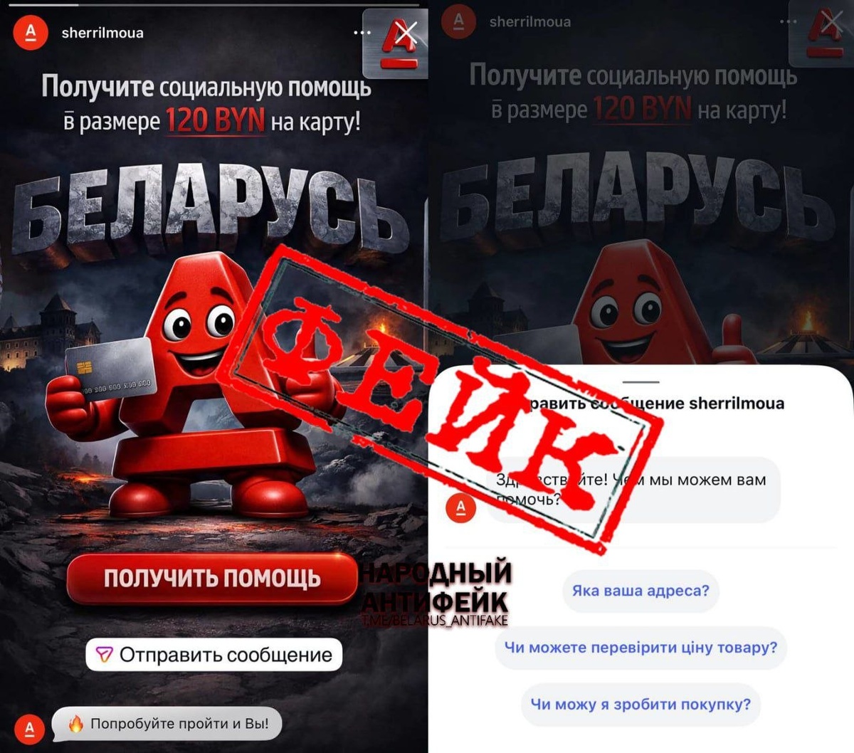В сети появилась мошенническая реклама якобы от имени Альфа-Банка, в которой пользователям предлагают получить «социальную помощь» в размере 120 рублей. Но мошенники так расслабились, что забыли сменить название и язык аккаунта. В итоге аккаунт начал задавать вопросы на украинском языке. Если увидели подобную рекламу - обязательно подайте жалобу. Это займёт минуту вашего времени, но возможно, вы кого-то этим спасёте. Сообщить о фейке