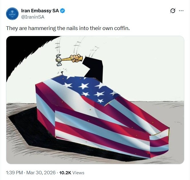 Iran's UK and South Africa embassies seem to compete in poking fun at possible deployment of US troops on the ground