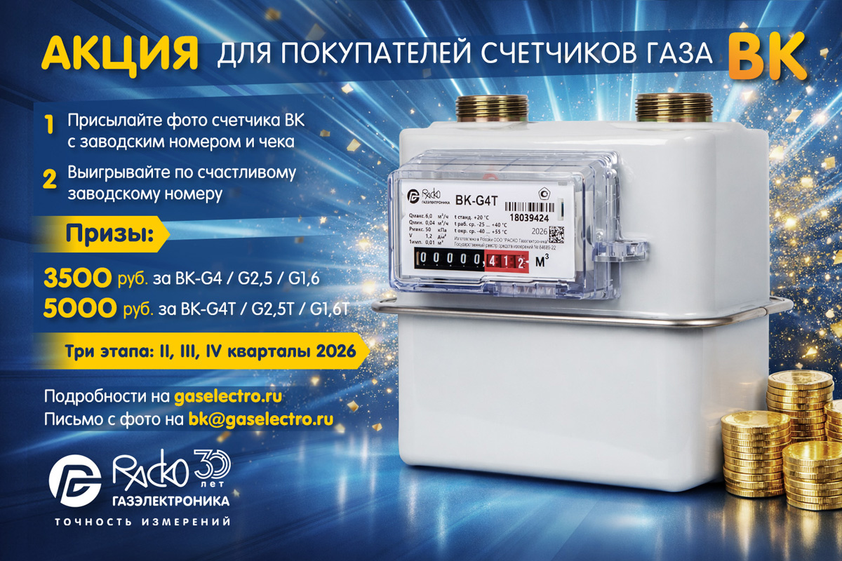 Друзья, напоминаем, что уже совсем скоро, с 1 апреля по 30 июня, начинается первый этап нашей акции для покупателей бытовых диафрагменных счетчиков газа ВК. Участвуйте и получайте денежные призы! 💰 Как выиграть? 🔹 Способ 1 — по покупке: