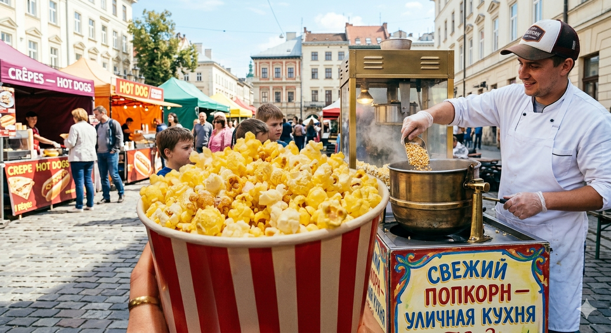 Если полевая кухня — это символ сытости в суровых условиях, то попкорн — это абсолютный чемпион среди «эмоциональной» еды. Это продукт, который превратил обычное употребление калорий в глобальный культурный ритуал.