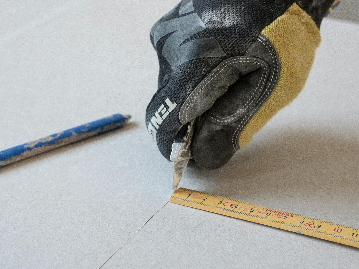 Прямолинейная резка – самая частая операция при укладке. Последовательность одинаковая, какой бы инструмент ни использовался: