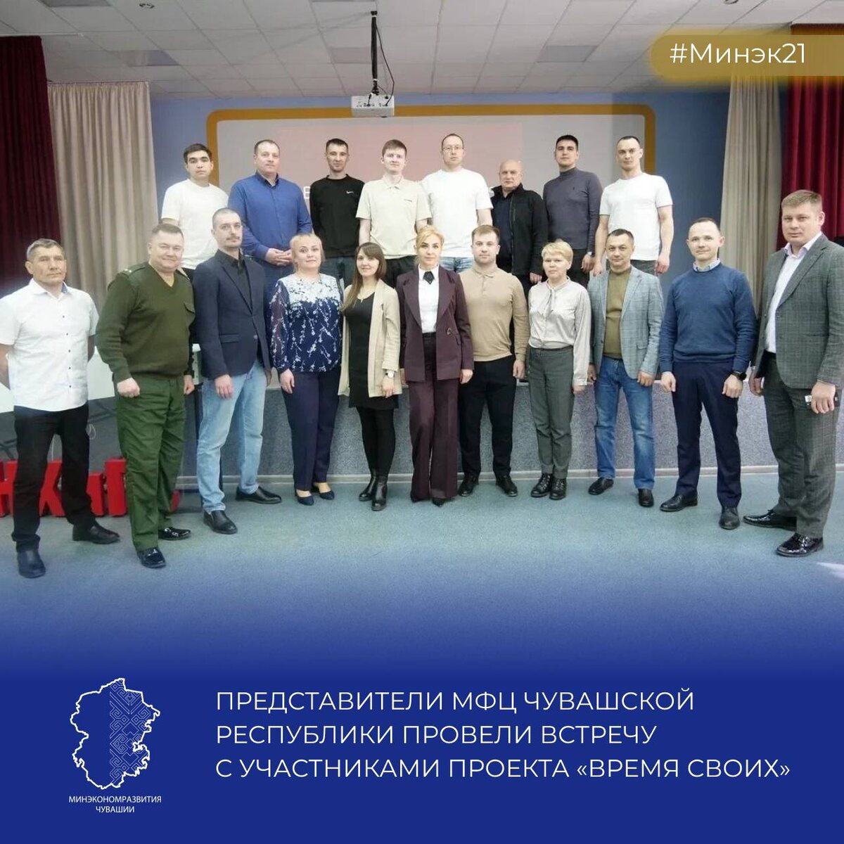 В рамках четвёртого этапа проекта «Время СВОих» участников познакомили с работой Многофункционального центра Чувашии. ⚡️ Директор МФЦ Чувашии Марина Романова представила ключевые показатели работы, рассказала о функциях Центра и его задачах. Приоритетом для организации является предоставление мер социальной поддержки участникам СВО и членам их семей. Так, слушателей программы проинформировали о создании специального «навигатора» мер поддержки и о планах по внедрению механизма «комплексного запроса». «Комплексный запрос — это возможность подать одно заявление на несколько мер поддержки сразу. Не нужно ходить по разным ведомствам, чтобы оформить, например, и выплату, и льготу на ЖКХ — всё делается в рамках одного заявления в МФЦ», — рассказала Марина Романова. ⚡️ Представители МФЦ подробно остановились на этапах совершенствования системы госуслуг в Чувашской Республике. Говорили и о вакансиях: в центре ждут тех, кто хочет помогать людям. Обсудили, как делают госуслуги удобнее — станда