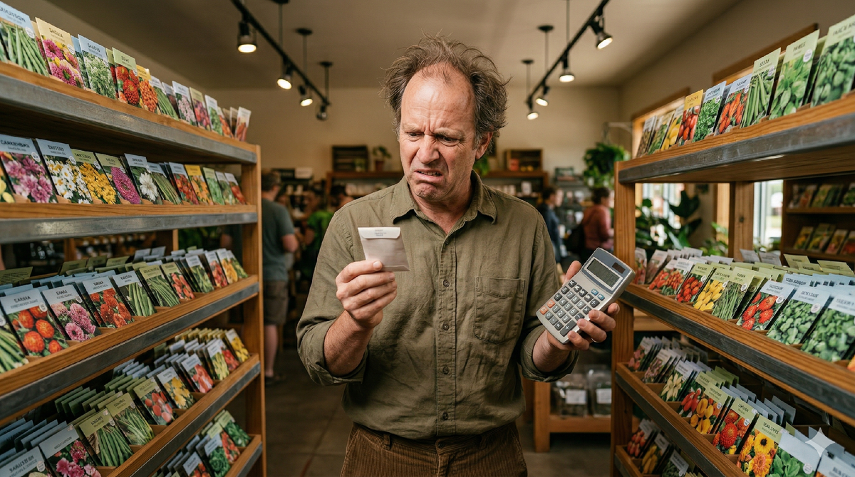 В одном пакетике 5 семечек, в другом — 8. Цена одинаковая. Вы этого даже не заметите, пока не возьмёте калькулятор. Рассказываю, как упаковка семян устроена так, чтобы вы не сравнивали. Откройте маркетплейс и вбейте «огурец Герман F1». Это один из самых популярных гибридов в России — ранний, без горечи, растёт и в теплице, и в грунте. Вы увидите десятки карточек: «Аэлита» за 99 рублей, «Дом Семян» за 142, набор из трёх пакетов за 277. Кажется — просто разброс цен. Но это три разных товара, которые притворяются одним. «Аэлита» за 99 ₽ — это 5 семян, по 19,8 ₽ за штуку. «ПОИСК» в ОБИ за те же 99 ₽ — уже 8 семян, по 12,4 ₽ за штуку. Одна и та же цена на ценнике, но разница — 60%. А набор «Аэлита 3 пакета по 6 штук» за 277 ₽ — это 18 семян, по 15,4 ₽ за штуку. Выглядит дорого, но на одно семечко дешевле, чем маленький пакетик той же фирмы. Потому что это выгодно продавцу. В молоке есть закон — на ценнике обязаны указать цену за литр. С семенами такого нет. Каждый фасовщик сам решает, сколь