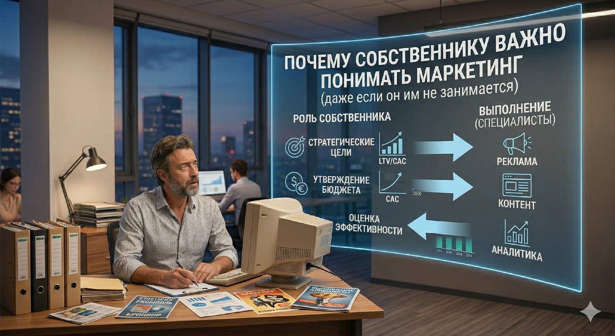 Пусть этим занимаются специалисты». И в этом есть логика. Владелец бизнеса не обязан настраивать рекламу или разбираться в рекламных кабинетах. Но здесь есть один важный момент. Полностью игнорировать маркетинг собственнику тоже не получается. Потому что от маркетинга напрямую зависит поток клиентов. В бизнесе есть несколько вещей, которые сложно отдать на аутсорс без понимания. Например: финансы