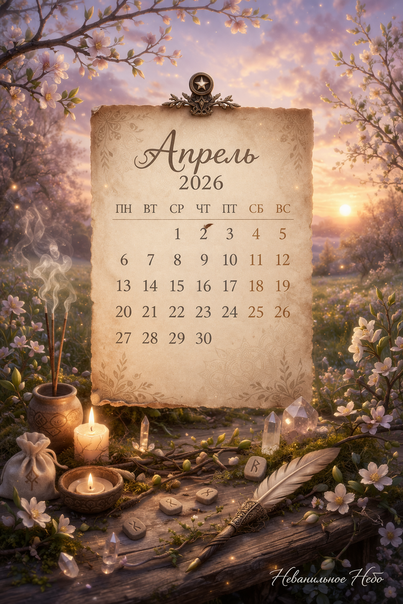 Апрель 2026 — это время, когда звёзды, предки и космос говорят в унисон: стройте, действуйте, но оставайтесь в потоке. Ритуалы, медитации и осознанные намерения на этих датах усилят вашу энергетику на весь год.