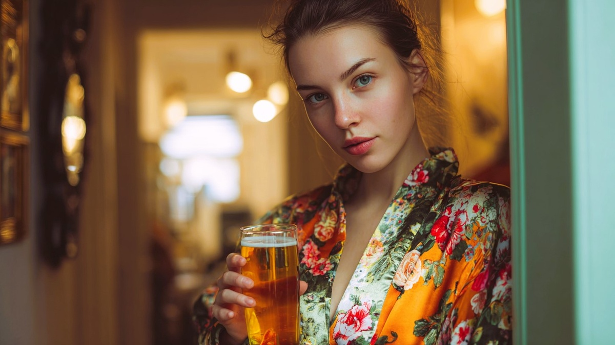 За дверью раздались шаги, щёлкнул замок. На пороге появилась Марина — в шёлковом халате, с бокалом розового вина в руке.