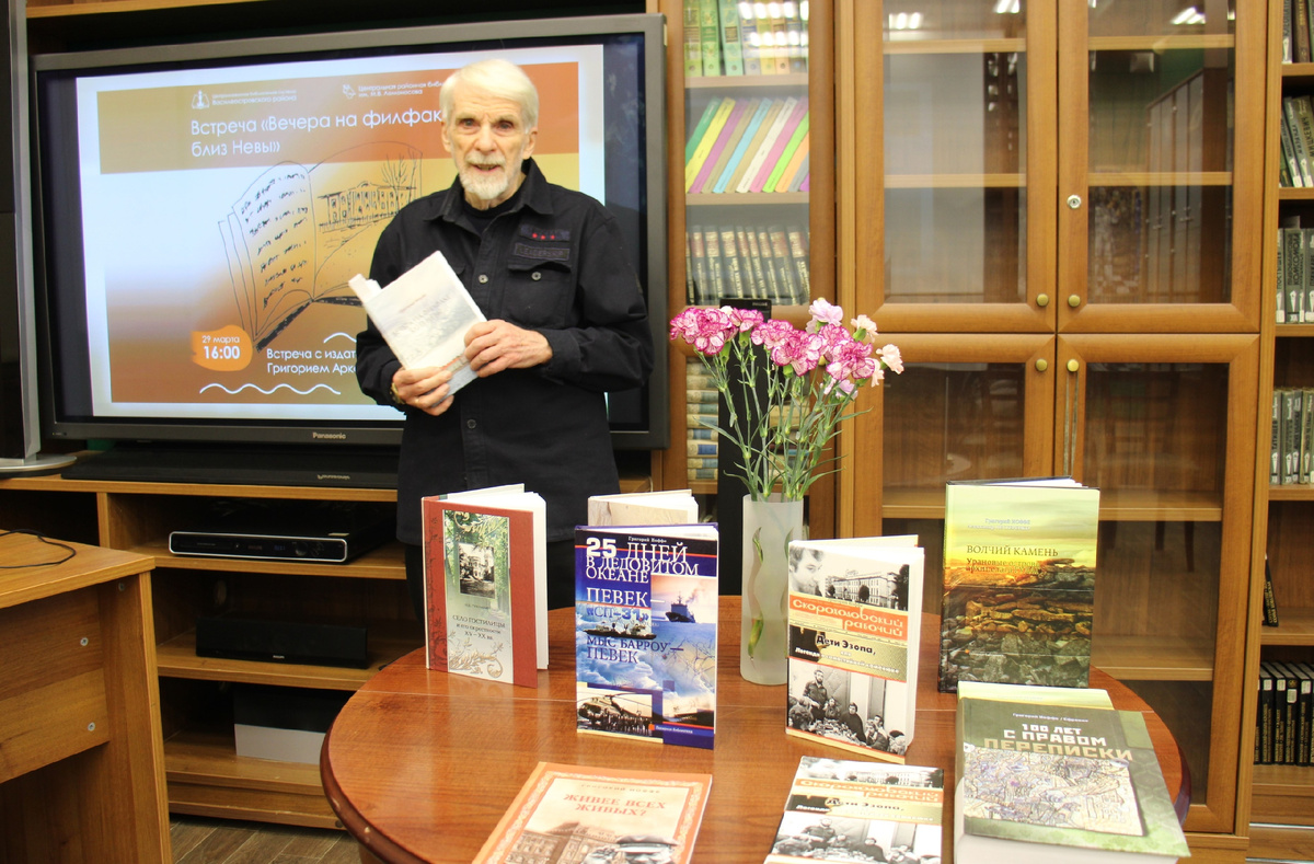 В этот вечер была представлена новая книга Григория Аркадьевича «Вечера на филфаке близ Невы» — сборник историй, погружающий в атмосферу студенческих лет и философских споров.
