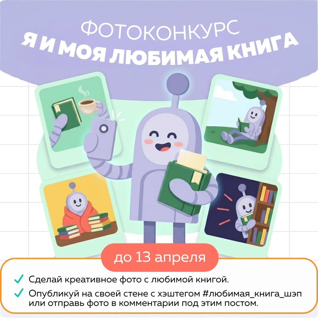 » 📸 Время достать любимый томик с полки и превратить его в главного героя вашего контента. Мы объявляем старт большого фотомарафона в ШЭП! В рамках Всероссийской недели детской книги приглашаем учеников 1–10 классов принять участие в школьном конкурсе «Я и моя любимая книга». 1️⃣ Придумай идею. Это может быть необычный кадр с книгой или целая инсценировка сюжета, где ты превращаешься в главного героя. Используй реквизит, ищи интересные ракурсы и лови классный свет. 2️⃣ Сделай фото. Постарайся передать атмосферу произведения: через свои эмоции, фон или детали. Главное — чтобы на снимке ожила история, которую ты любишь. 3️⃣ Опубликуй работу до 14 апреля. Размести фото на своей странице ВКонтакте с хэштегом #любимая_книга_шэп или прикрепи его в комментариях прямо под этим постом. Авторов самых оригинальных снимков ждут призы от Лаборатории интеллектуальных инициатив.🎁 #ШколаЭкономикииПрава #ШЭП #Анонс_ШЭП #события_ШЭП #неделя_детской_книги #лаборатория_интеллектуальных_инициатив #ко
