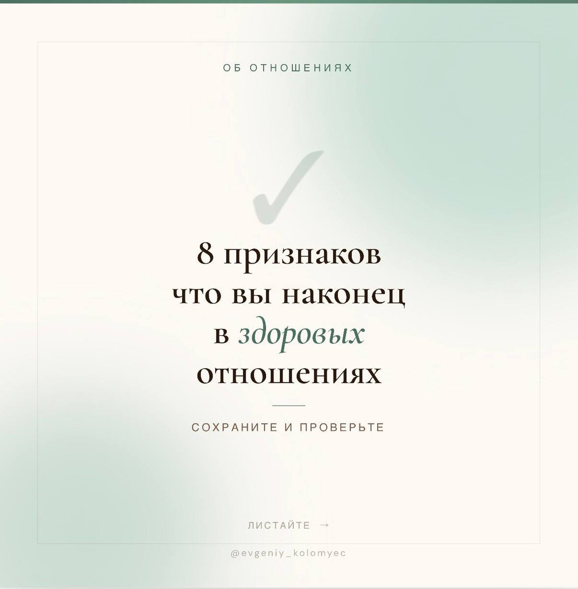 Про боль. Про красные флаги. Но важно знать и как выглядит хорошее - чтобы узнать когда оно придёт и к чему стремиться. 8 признаков здоровых отношений. Сохраните и сверьтесь. Напишите в комментариях сколько пунктов есть в ваших отношениях. 👇