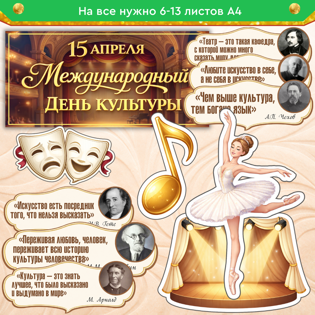 Набор оформления к 15 апреля – Международный день культуры. Подходит для оформления доски, стенда, тематического уголка или коридора. В комплект входят: