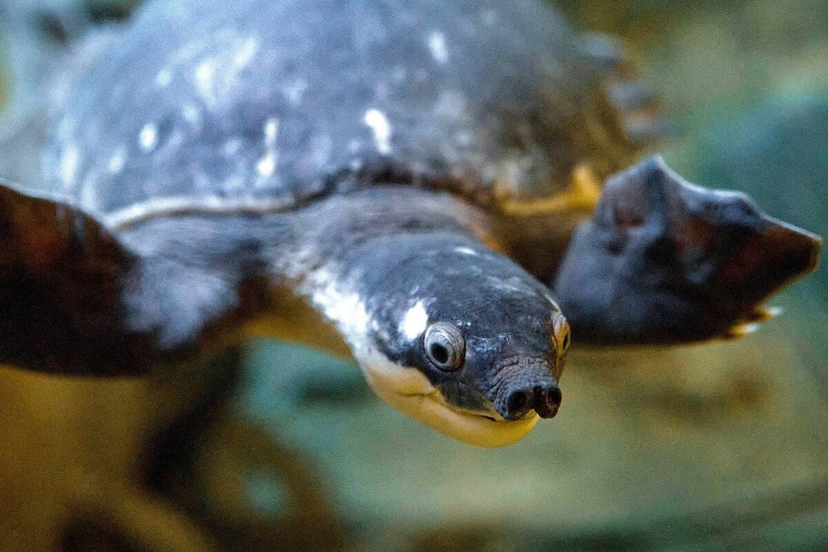 Ничего милее и необычнее вы сегодня точно не встретите! Знакомьтесь: перед вами свинорылая черепаха — настоящее чудо эволюции, которое заставляет улыбнуться даже самых серьёзных посетителей 🫶🏼 Представьте себе: мощный панцирь, перепончатые ласты, как у морской черепахи, и вдруг — курносый пятачок посреди морды, словно кто-то приставил к рептилии носик поросёнка. Именно из-за этой забавной детали черепаха и получила своё имя. Но свиной нос — не просто украшение. Внутри ноздрей у неё скрыты особые выросты, похожие на крошечные жабры. Они позволяют черепахе усваивать кислород прямо из воды! Такой суперспособности позавидует любой аквалангист. А знаете, насколько это редкое создание? Свинорылая черепаха внесена в Международную Красную книгу, и долгие годы зоологи всего мира считали её самым редким видом черепах на планете. Встретить её в дикой природе — большая удача, ведь живёт она лишь в реках Новой Гвинеи и северной Австралии. Но у нас, в Самарском океанариуме, вы можете рассмотреть э