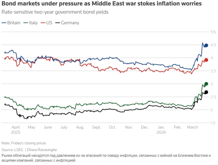 Мировые цены на государственные облигации прогнозируются к самому значительному месячному падению за последние годы, так как инвесторы оценивают риски, связанные с длительной войной на Ближнем Востоке, для инфляции и экономического роста.