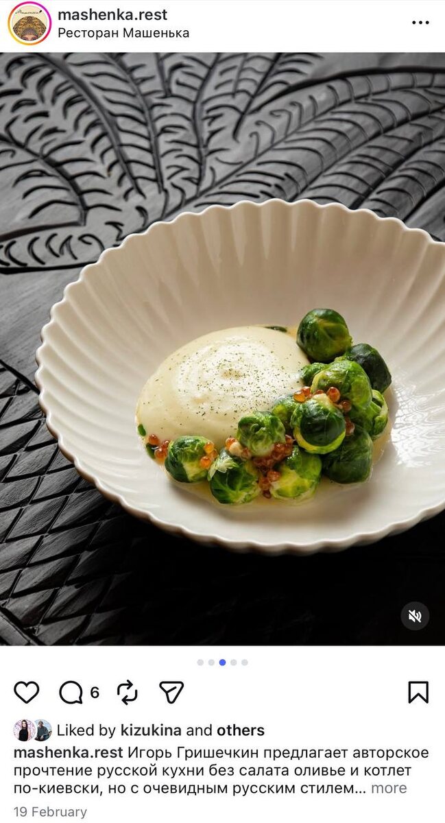 «вдохновился». Мне эта тема хорошо знакома по нашей ресторанной сфере. Из недавнего, например, голубчики с крабом с брюссельской капустой, которые Игорь Гришечкин презентовал гастрономической общественности на открытии ресторана «Машенька», материализовались в слегка изменённом виде (спасибо большое!) в постном меню White Rabbit. Тут можно было бы поспорить, где заканчивается вдохновение и начинается заимствование, если бы не так давно шеф White Rabbit Владимир Мухин, один из самых титулованных шефов страны, с которого многие берут пример, не возмущался «украденному» у него коколардо, салу из кокоса, которое материализовалось в промышленном производстве (и, говорят, сделанное по другой технологии) у wellness-стартапа и ресторана растительной кухни Inspiro. То, как сам Владимир в своё время вдохновлялся культовыми блюдами мировых шефов, за что White Rabbit в профессиональных кругах прозвали «кинотеатром повторного фильма», помнят только олды вроде меня и ещё горстки старожилов рестор