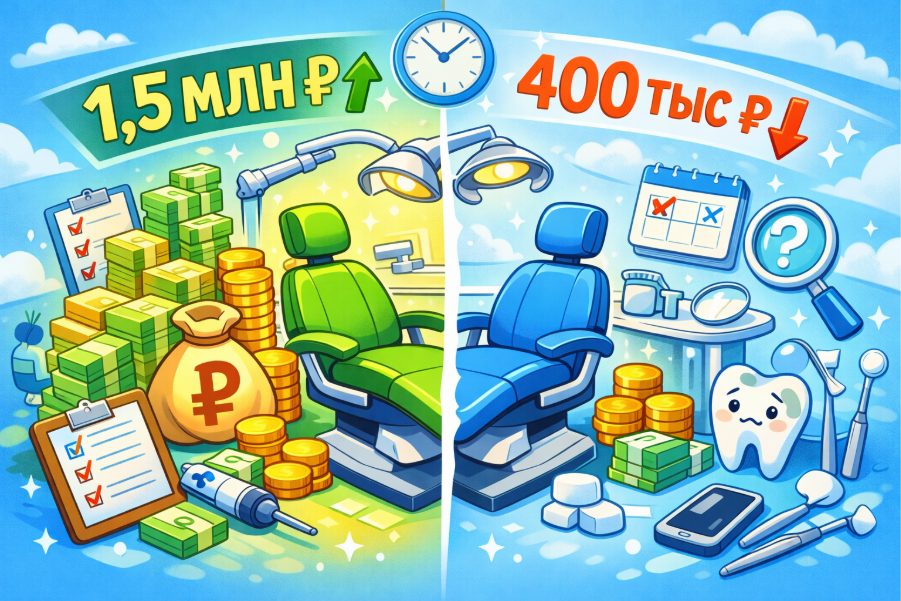 Два одинаковых кресла в двух разных клиниках — с одинаковым оборудованием, с врачами одинаковой квалификации, в одном городе — могут давать выручку которая отличается в три-четыре раза.