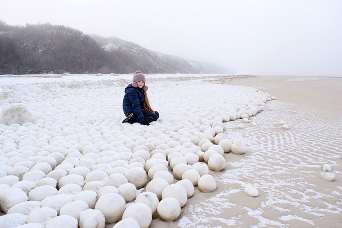 На побережьях морей и крупных озёр иногда можно увидеть десятки, а то и сотни идеально гладких ледяных шаров, разбросанных по пляжу. Их размер варьируется от теннисного мяча до метра в диаметре. Для случайного наблюдателя зрелище выглядит искусственным: кажется, будто кто-то вылепил снежки гигантских размеров и аккуратно уложил их на песок.