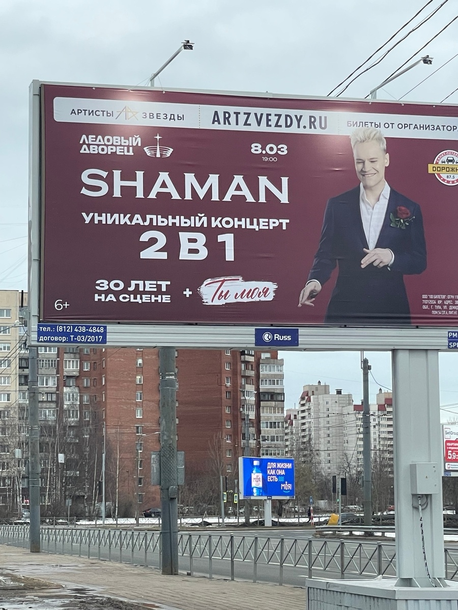 Этим вечером в Ледовом состоялась петербургская премьера новой песни SHAMAN о любви. На Ярославе был искрящийся серебряный доломан, который ему очень идёт и который можно отнести к его фирменному стилю, наряду с кожаными штанами и ремнем-патронташем.