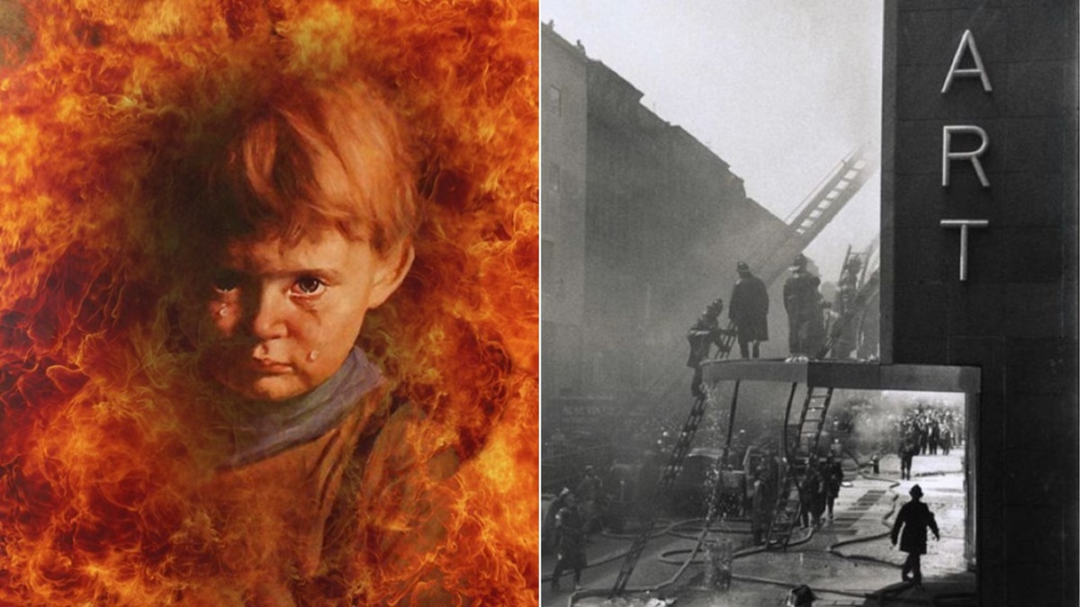 Пожарный из графства Эссекс, которого, видимо, насторожили повторяющиеся детали на местах трагедий, поделился с журналистами своим наблюдением. Он рассказал, что его бригада неоднократно выезжала на пожары, где дома выгорали дотла, превращаясь в черные остовы, и в этих руинах, среди обгоревшей мебели и обрушившихся конструкций, они неизменно находили одно и то же - копию картины «Плачущий мальчик», висевшую на стене и оставшуюся совершенно нетронутой. Пламя уничтожало все вокруг, но бумага и краски, изображающие заплаканного ребенка, каким-то чудом избегали огня.