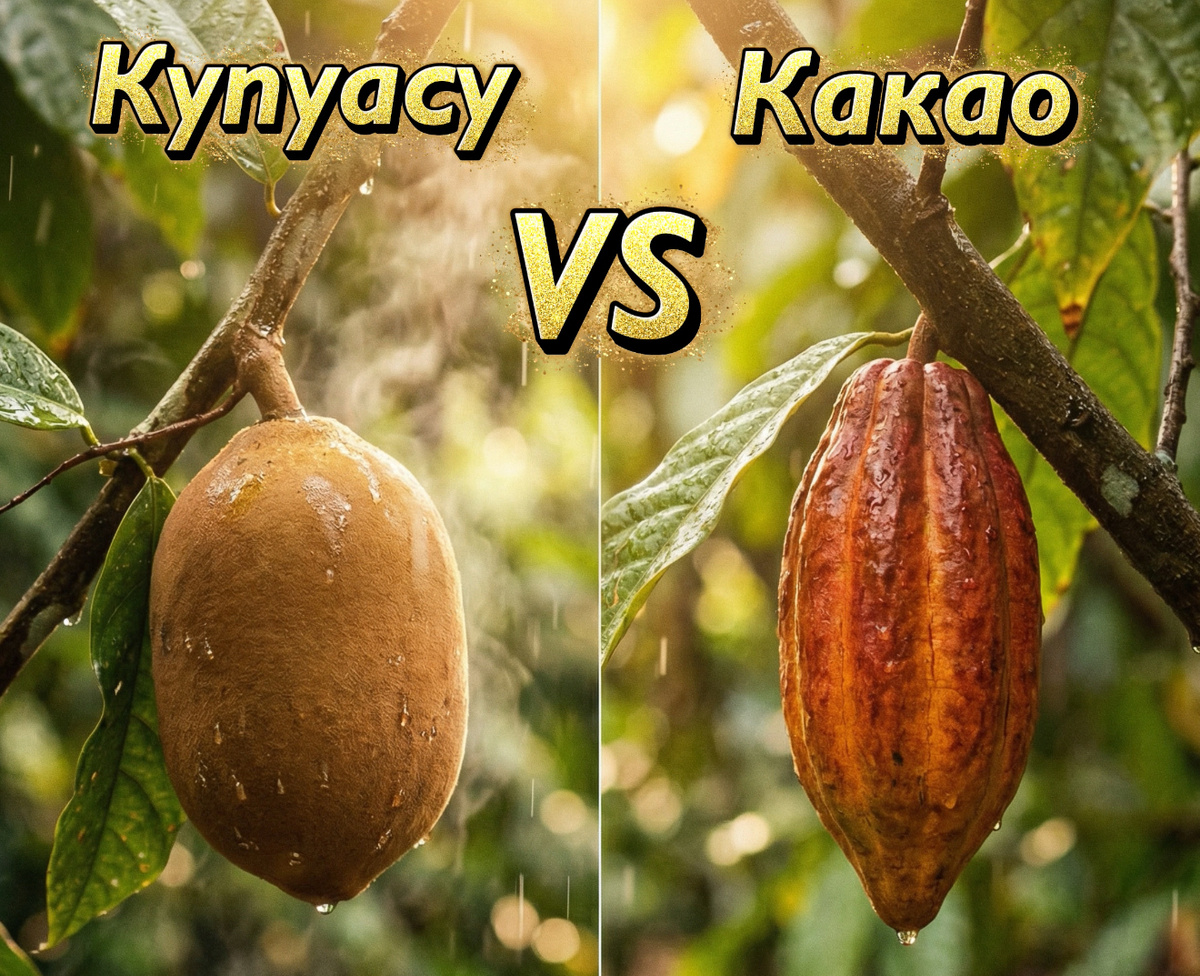Какао и купуасу происходят из тропических лесов Южной Америки. Оба относятся к роду Theobroma, который в переводе означает «пища богов».