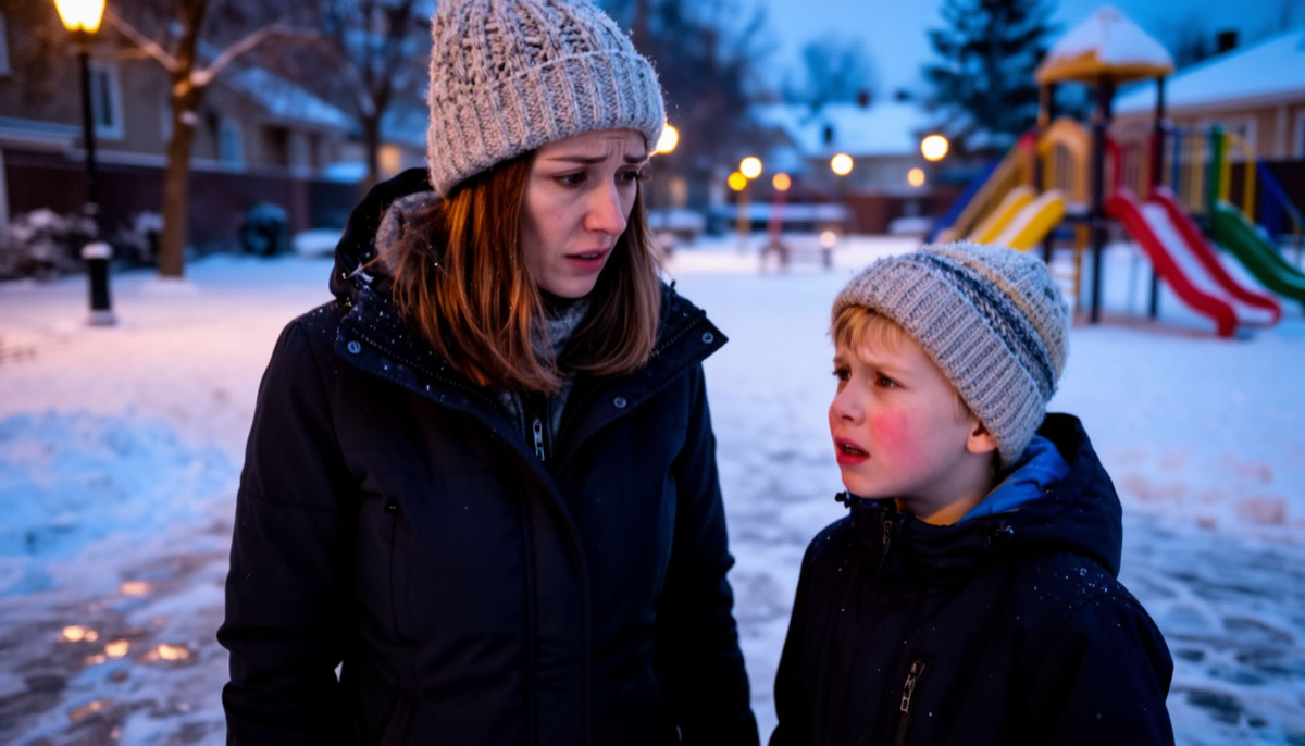 Рома всё это время стоял молча. Он поднялся медленно, не глядя на неё, опустив глаза в снег. Руки у него были красными от холода, худые пальцы сжимали края куртки, которая была ему явно велика.