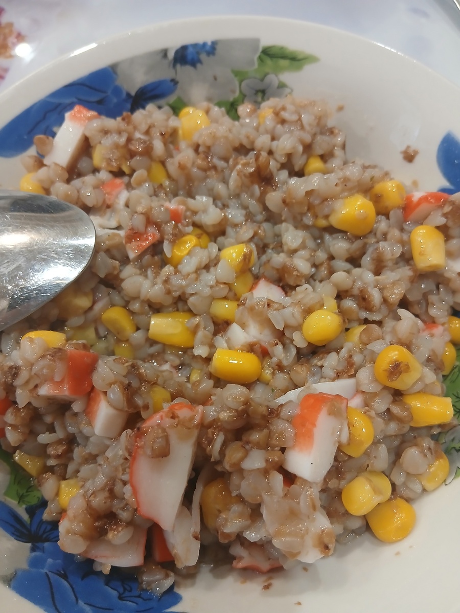 Сегодня хочу рассказать вам о самой прикольной гречневой каше))) лёгкая, воздушная, диетическая... Нам понадобится, гречневая крупа, крабовые палочки, консервированная кукуруза. Приготовить такую кашу очень легко и просто! Отвариваем гречневую кашу (15-20 минут) Пока варится греча режем кубиками крабовые палочки, открываем банку кукурузы и всё это в тарелку или миску. Каша сварилась, и её в этот же замес. Перемешали, посолили по вкусу, добавили растительного масла (1-2 ложки) и обед готов! Получается очень вкусно! Приятного аппетита!!!