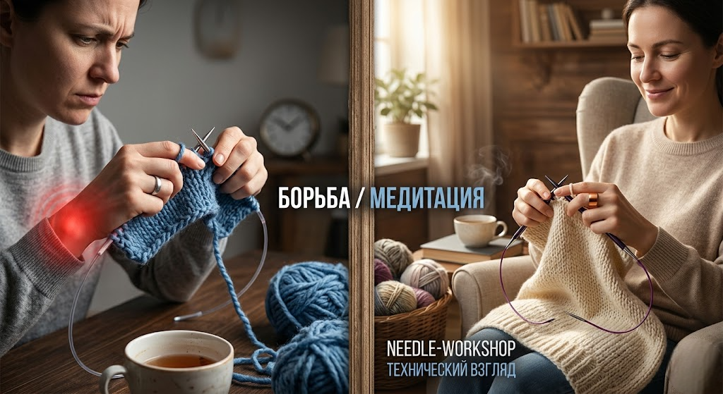 Вы когда-нибудь ловили себя на мысли, что вязание превращается из медитации в борьбу? Рядность петель, постоянное подтягивание лески, зацепы на стыках и ноющая боль в кистях к вечеру — всё это признаки того, что ваши спицы работают против вас, а не на вас. Сегодня в Needle-Workshop разберем техническую сторону вопроса: почему профессиональные инструменты с гибкой леской и идеальными стыками — это не каприз, а необходимость для тех, кто хочет вязать стильно и без лишних усилий. Стык между металлической частью спицы и леской — это «критическая точка». В бюджетных наборах здесь часто образуется микро-ступенька. Многие помнят старые спицы на жесткой пластиковой трубке, которая вечно скручивалась кольцами. Современные лески (особенно металлические в нейлоновой оплетке) обладают нулевой памятью. Инструменты, которые «вяжут сами», обычно имеют удлиненный и в меру острый кончик (lace tip). Секрет Needle-Workshop: Острый кончик позволяет подхватывать даже самую тонкую или расслаивающуюся пряжу,