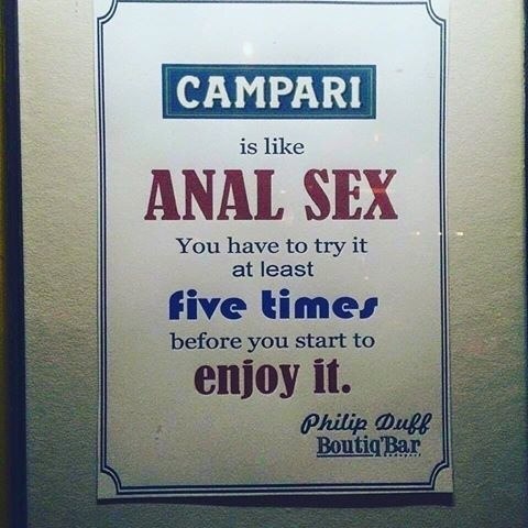 "Кампари - как анальный секс - нужно попробовать хотя бы раз пять, перед тем как ты действительно начнёшь им наслаждаться."