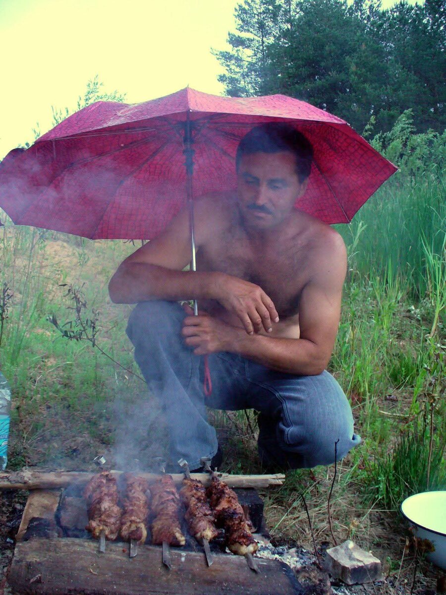 Так же, хорошо заходят шашлыки, под пару рюмочек. Дождь не помеха, главное, чтобы не ливень.