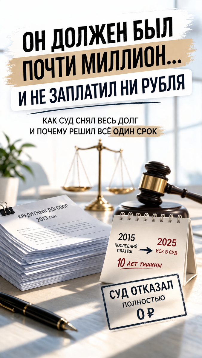 — «Будем взыскивать» Причём уже не просто долг. 👉 почти миллион Он смотрит на меня и спрашивает: — «Скажите честно… придётся платить?» Я не отвечаю сразу. Смотрю даты. И задаю один вопрос: — «Последний платёж когда был?» — «В 2015» И вот здесь становится понятно всё. В