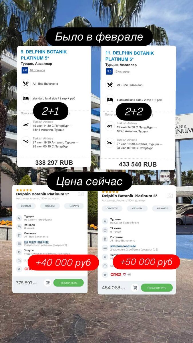 🔥 До окончания раннего бронирования на лето и осень осталось всего 2 дня ⏳ Это значит, что ещё можно успеть взять тур по действительно выгодной цене 💸 На фото показываю реальный пример: отель, который мы забронировали туристам в феврале, и его цена сегодня 👀 👉 Тогда они внесли всего 30% - это было 101 000 ₽ 👉 Если бы бронировали сейчас, переплатили бы примерно 40 000 ₽ Разница ощутимая, правда? Оставшуюся сумму туристы внесут за 30 дней до вылета ✈️ А если планы поменяются, мы поможем перенести даты или оформить возврат 💯 Так что сейчас тот самый момент, когда можно сэкономить и спокойно планировать отдых 🌴 👉Написать нам и забронировать тур на лето #раннеебронирование