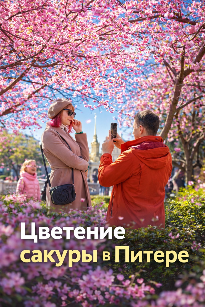 А вы знали, что сакура — это разновидность декоративной вишни (Prunus serrulata и другие виды), которую выращивают не ради плодов, а ради весеннего цветения? В отличие от обычной вишни, плоды сакуры (если они появляются) мелкие и несъедобные. В Японии существует традиция ханами — любование цветами. Метеорологи отслеживают фронт цветения сакуры в реальном времени, а в новостях объявляют, в каком парке деревья распустились первыми. В Петербурге такой официальной карты нет, но есть список мест, где сакуру можно увидеть. Чаще всего она зацветает в конце апреля — начале мая, а цветение длится 10–14 дней. При сильном ветре — и того меньше.