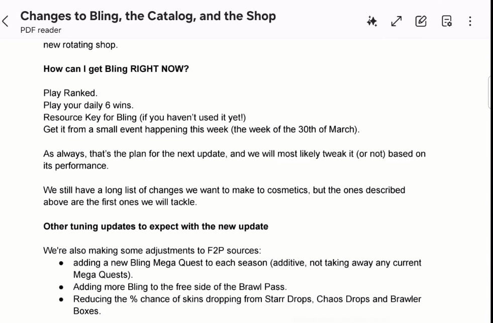 На этой неделе разработчики проведут ивент, в котором можно будет залутать блинги. Также будут следующие способы: — Появится мегаквест, наградой за который будут блинги; — Со следующего обновления в бесплатной части Brawl Pass будет больше блингов; — Процент выпадения скинов с ящиков и дропов будет уменьшен. — Советуем тратить ключи ресурсов на блинги. ✅Новости по Clash Royale - ТЫК Мир Supercell. Подписаться