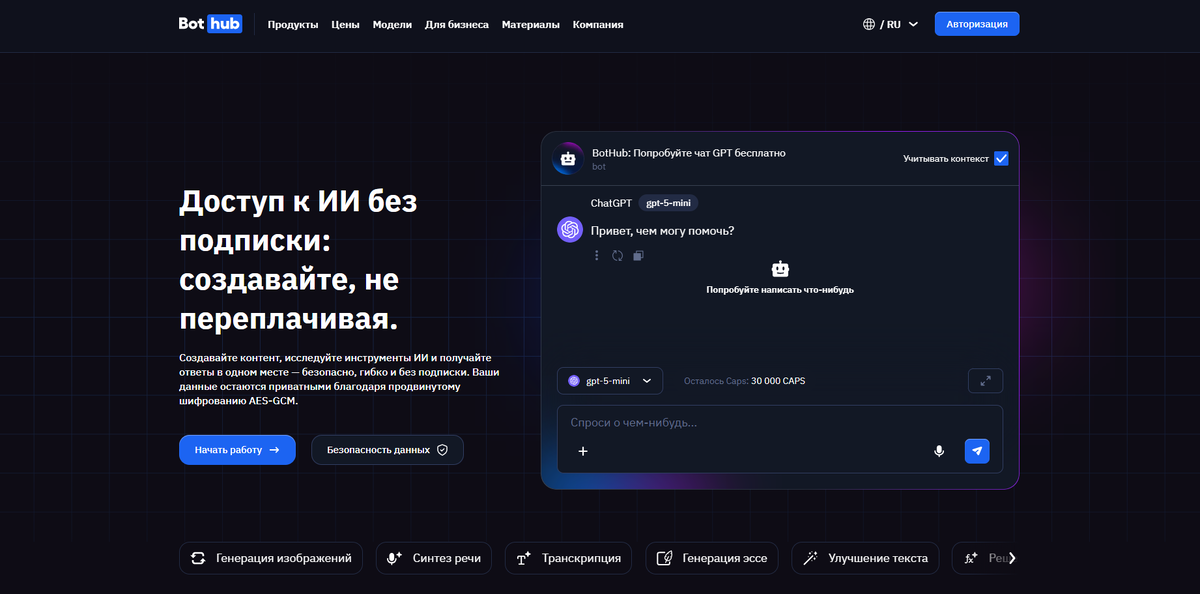 1. Bothub - мощные генеративные модели, тонкое управление ретушью через диалог.