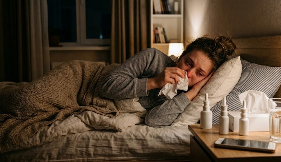Знаете это чувство, когда весь день нос еще кое-как дышал, но стоило голове коснуться подушки, как одну ноздрю (а то и обе сразу) будто заложили кирпичом? Вы поворачиваетесь на левый бок — закладывает левую сторону, на правый — правую. В итоге вместо спокойного сна начинается утомительный квест по поиску удобной позы, а утро уже встречаете с тяжелой головой и ощущением, будто и не спали вовсе. Почему именно ночью насморк становится таким серьезным испытанием? Все дело в физиологии. Когда мы ложимся, распределение крови в организме меняется. В горизонтальном положении приток крови к слизистой оболочке носа усиливается, сосуды расширяются, и отек становится более выраженным. Если днем гравитация помогает слизи оттекать естественным путем, то ночью этот процесс замедляется. Добавьте к этому сухой воздух, который раздражает и без того воспаленную слизистую, и станет понятно, почему нос «решает», что спать вам сегодня не обязательно. Чтобы ночная заложенность не мешала восстанавливать силы,