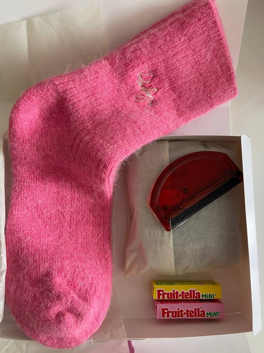 ? Обнаружила в коробке вместе с носочками Radvga щеточку для кашемира и Fruittella. Вспомнила (и нашла фото), что несколько лет назад заказ от бренда приехал вместе с чупа чупсами. Цена вопроса - 100 рублей, но, согласитесь, настроение от посылки совсем другое. Это просто мило! Знаю, что Pitkina тоже кладут вместе со свитером щетку для ухода. Еще вот недавно нашла в посылке от Pompa портновский брендированный сантиметр. В хозяйстве пригодится) Очень интересно, а кто-то еще из наших брендов подкидывает сюрпризы в заказы? Делитесь в комментариях. Вишлист