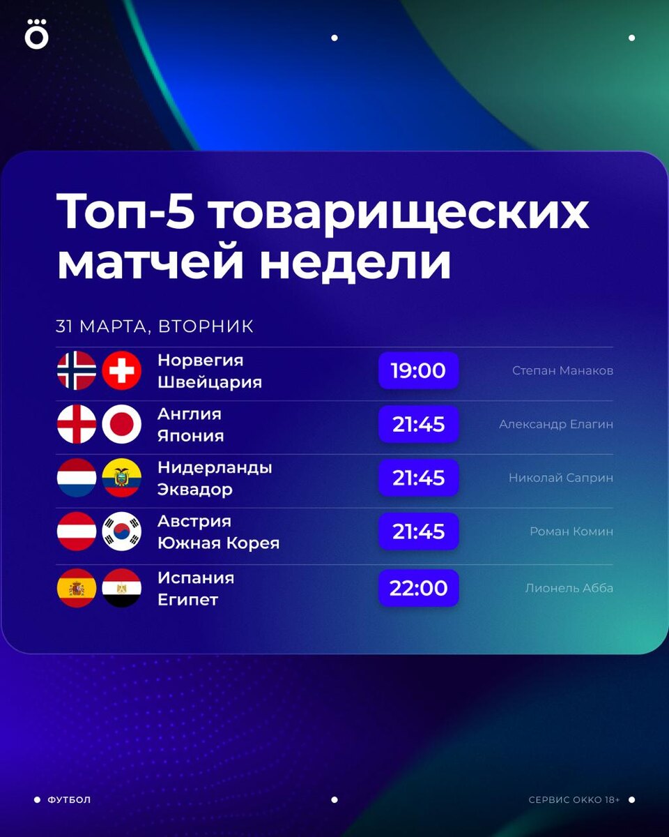 Завтра покажем много международных товарищеских матчей. Выбрали пять самых интересных 🤩