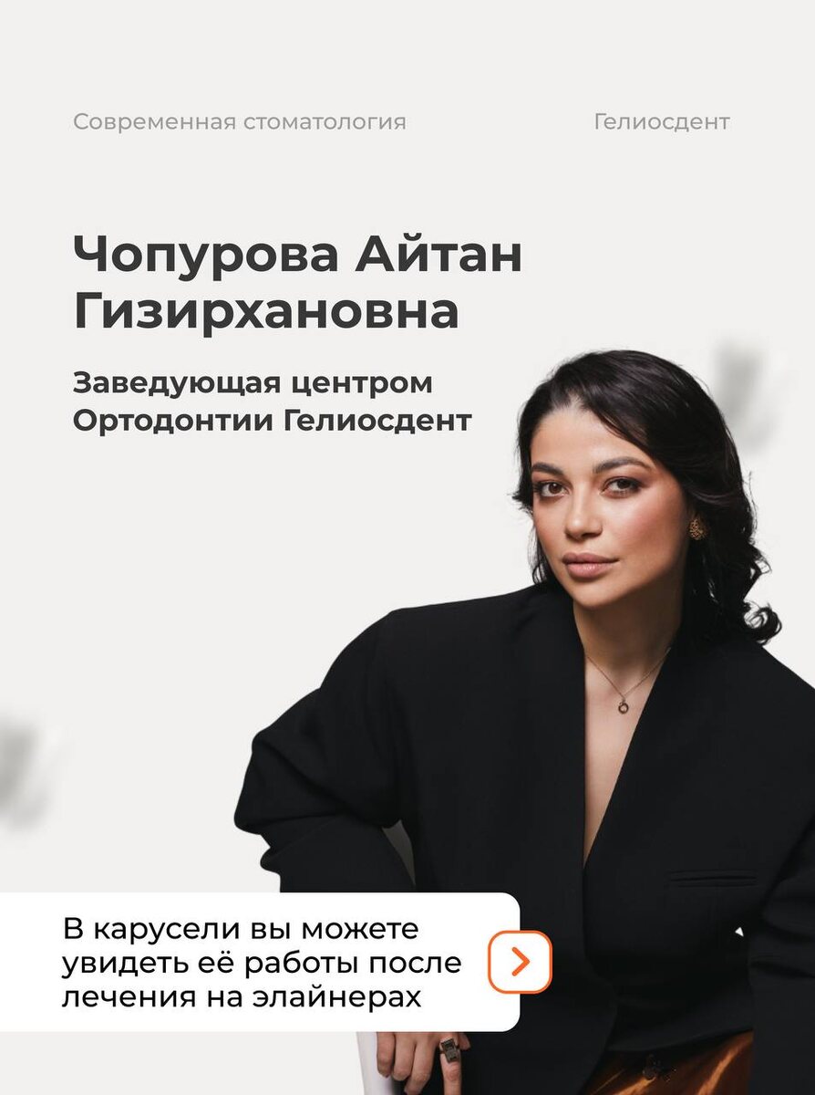 Чопурова Айтан Гизирхановна — заведующая центром ортодонтии нашей клиники, международный спикер конференций от производителя элайнеров