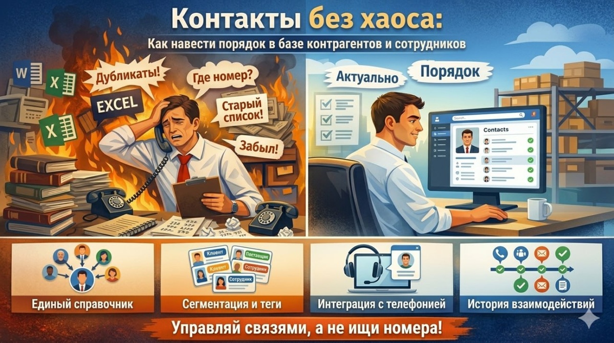 Представьте картину: глубокая ночь, на критическом узле цеха №3 останавливается импортный насос. Оператор в панике. Он знает, что чинить это должен механик Петров, но Петров сегодня выходной. У оператора есть список телефонов в Excel, распечатанный полгода назад. Начинаются судорожные звонки. Выясняется, что Петров сменил номер, а дежурный мастер вообще уехал на другой объект. Проходит час. Два. Конвейер стоит. Убытки растут с каждой минутой. Этот сценарий — классический пример того, что происходит, когда к «контактам» на предприятии относятся как к простой записной книжке. В современной промышленности модуль контактов — это не список имен, это критически важный узел управления доступом и оперативным реагированием. Кажется, что может быть проще: имя, должность, телефон, электронная почта. Но на заводе «контакт» — это динамическая сущность. Петров сегодня — просто механик, а завтра — ответственный за электробезопасность на смене А. CRM-системы, ориентированные на продажи, здесь бессильн