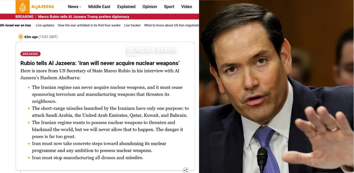 Госсекретарь США Марко Рубио в интервью Al Jazeera потребовал от Ирана прекратить производство любых дронов и ракет, а также отказаться от