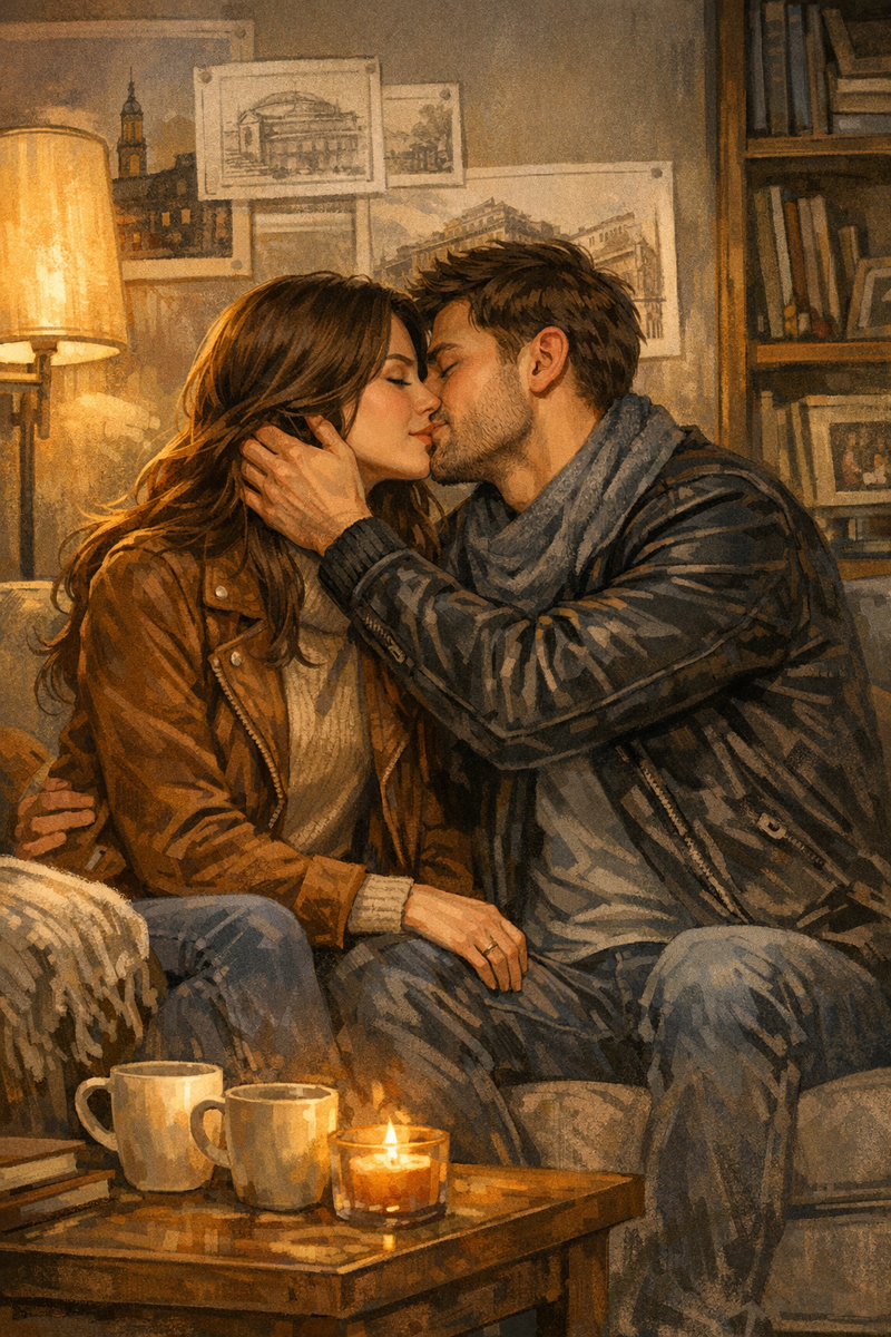 Они поцеловались. Медленно. Нежно. Казалось, время остановилось. Мир сжался до размеров комнаты, дивана и двух людей, которые нашли друг друга вопреки всему.