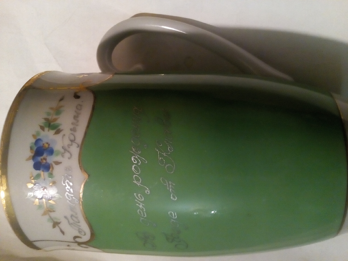 Обычно такие надписи снижают цену предмета, так ка люди у нас обычно - обычные. :0)) Вот, например... Бокал. "Память Крыма. В день рождения Феде от Клавы. Ялта 1958" Испортили? 15 см высотой, 8,5 см диаметр... Под пиво что ли? :0)))) Это дарственная. А вот владельческая: Б.Ш. Кабаков... Кто такой? Откуда? А вдруг предок Ильи Кабакова, художника-миллионера? Грвфин такой: И вот, предмет... Непонятно - подарили или сам заказал: Это такая памятная медаль тому, кто в Японском Токио покорил телебашню... 333 метра высотой. Наш турист... Приехал в Японию. И привёз оттуда вот эту медаль. И еще написано как звать и когда именно был в башне. Приехал... И, наверно, продал... А может потерял? Или украли... Долго ли коротко ли, а оказалась медаль у меня. Спрашивается... Зачем тебе, Алексей Леонов, приспичило лезть на башню в Токио? Захотелось посмотреть сверху вниз, как знаменитый тёзка? :0)