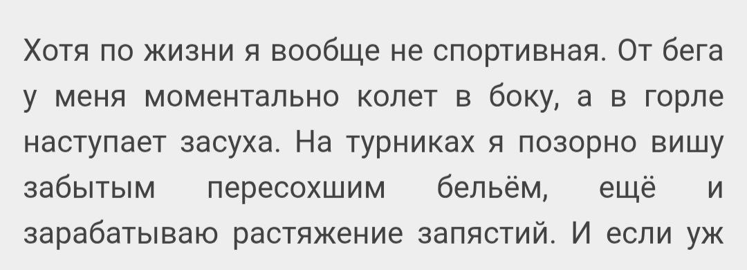 : ✅ второй день без повышения температуры ✅ голос вернулся на тихом режиме ✅ кашель уже не звучит непрочищенным дымоходом. А ещё я лечусь "Шарфом", потому что пишу его внаглую абсолютно по-своему. 🥗 Смешиваю служебный роман с элементами роуд-стори и боже-упасичными флэшбэками. 🎤🔦 Рассказываю от имени героини, но активно подсвечиваю героя от лица автора. 😎 С радостью вбрасываю мысли и не жую их, доверяя моим вдумчивым читателям. 🤯 Наворачиваю сложные эпитетные конструкции и в удовольствие играюсь со словообразованием. В общем, забила на должную быть понятной коммерцию и счастливо творю и вытворяю )) Если не всех распугала, то вот вам две заманушечки, чтобы почитать "ШАРФ": Скрин 1: списано с автора (кто любит находить личное в тексте) Скрин 2: описания в духе Евдо (кто любит такое ещё с Цвет МЫ) История ТУТ #шарф@anna_evdo30 #авторское@anna_evdo30 #личное@anna_evdo30