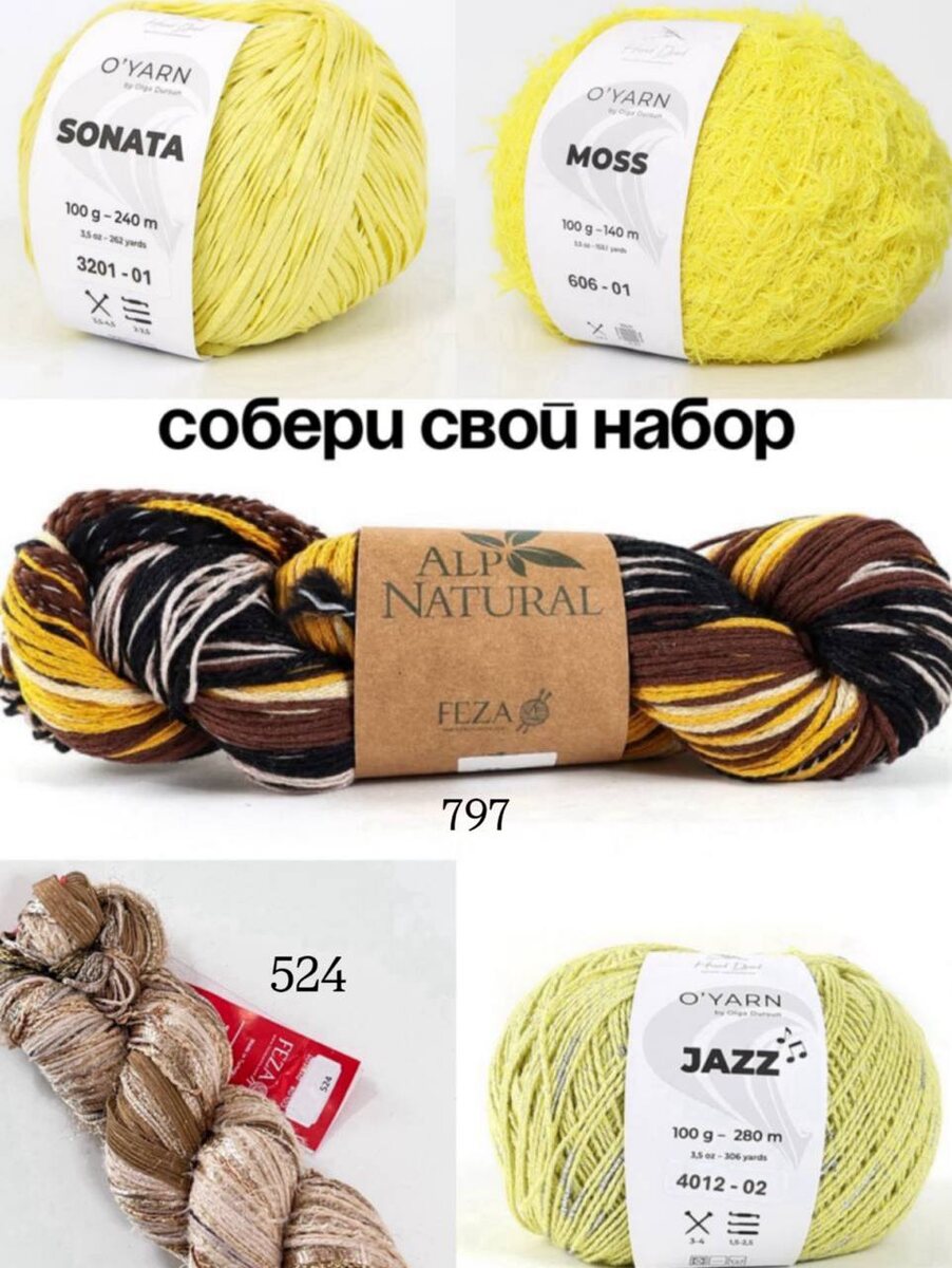 😍❤️🔥 Порой можно взять пряжу разных нескучных фактур от O’YARN и связать самое простое изделие 😁 а получится ШЕДЕВР! Потому что вся пряжа O’YARN и Feza прекрасно сочетаются между собой! Мы знаем как вы любите наши наборы пряжи и комбинации цветов и фактур, поэтому собрали для вас СВЕЖИЕ ПОДБОРКИ из пряжи 🙈 Просто собирайте свой набор на сайте и вяжите шедевр Специально для этого мы открыли продажу пряжи мотками! А ЕЩЁ при покупке СЕГОДНЯ, мы дарим вам подарки; • Буклет с 11 бесплатными мастер-классами • Жидкий гель для стирки ваших изделий • МК на пряжу Feza от Ольги Дурсун при покупке от 5 пасм Feza Alp • Упаковку пряжи Night от Tutto Bene при заказе от 16 000 рублей 👉 СОБРАТЬ НАБОР НА САЙТЕ Поторопитесь поймать этот крутой шанс! Ждём на сайте