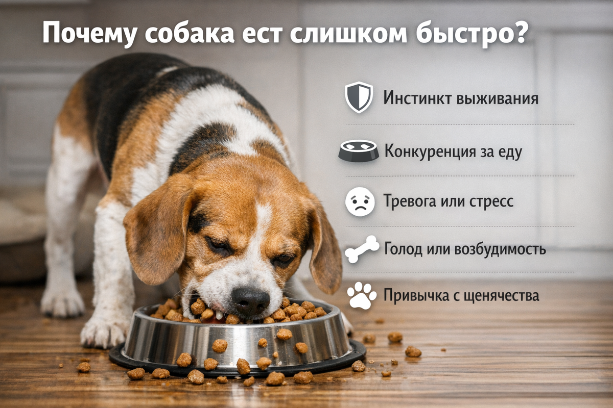 Инстинкт выживания или болезнь? Скрытые причины, по которым пес заглатывает еду не жуя.