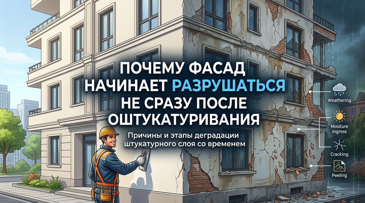 Почему фасад начинает разрушаться не сразу после оштукатуривания