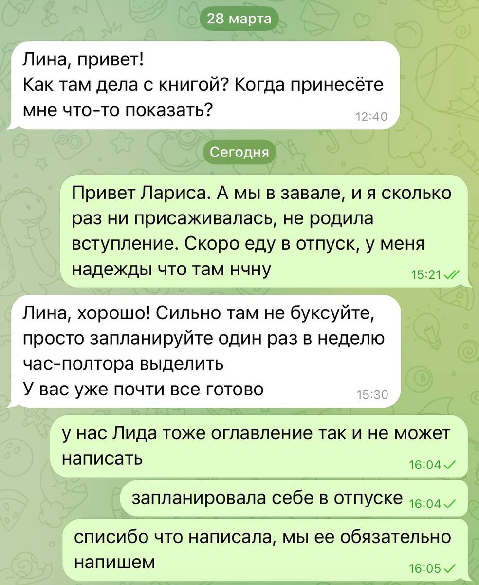 Кто помнит, что мы с Лидой пишем книгу? Помнит наш книжный куратор Лариса